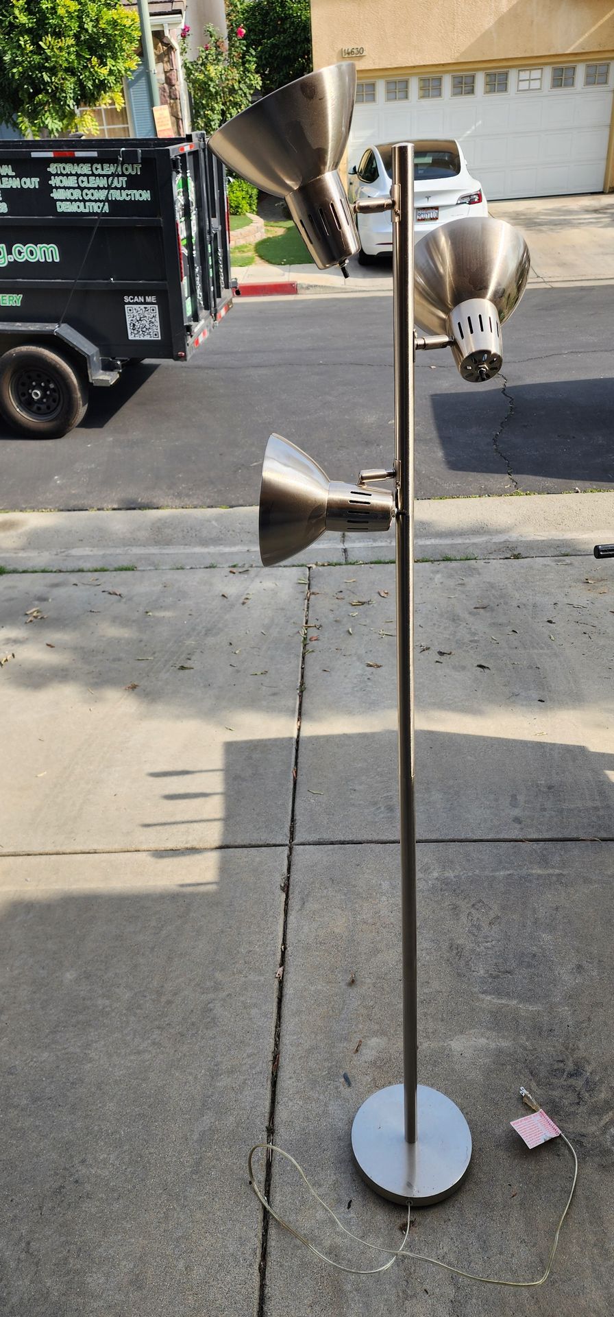 Stainless steel lamp and bulbs. Used for about a year, no scratches or damage to lamp. This was bought from Lowes for about 86$ after taxes, not including light LED bulbs.