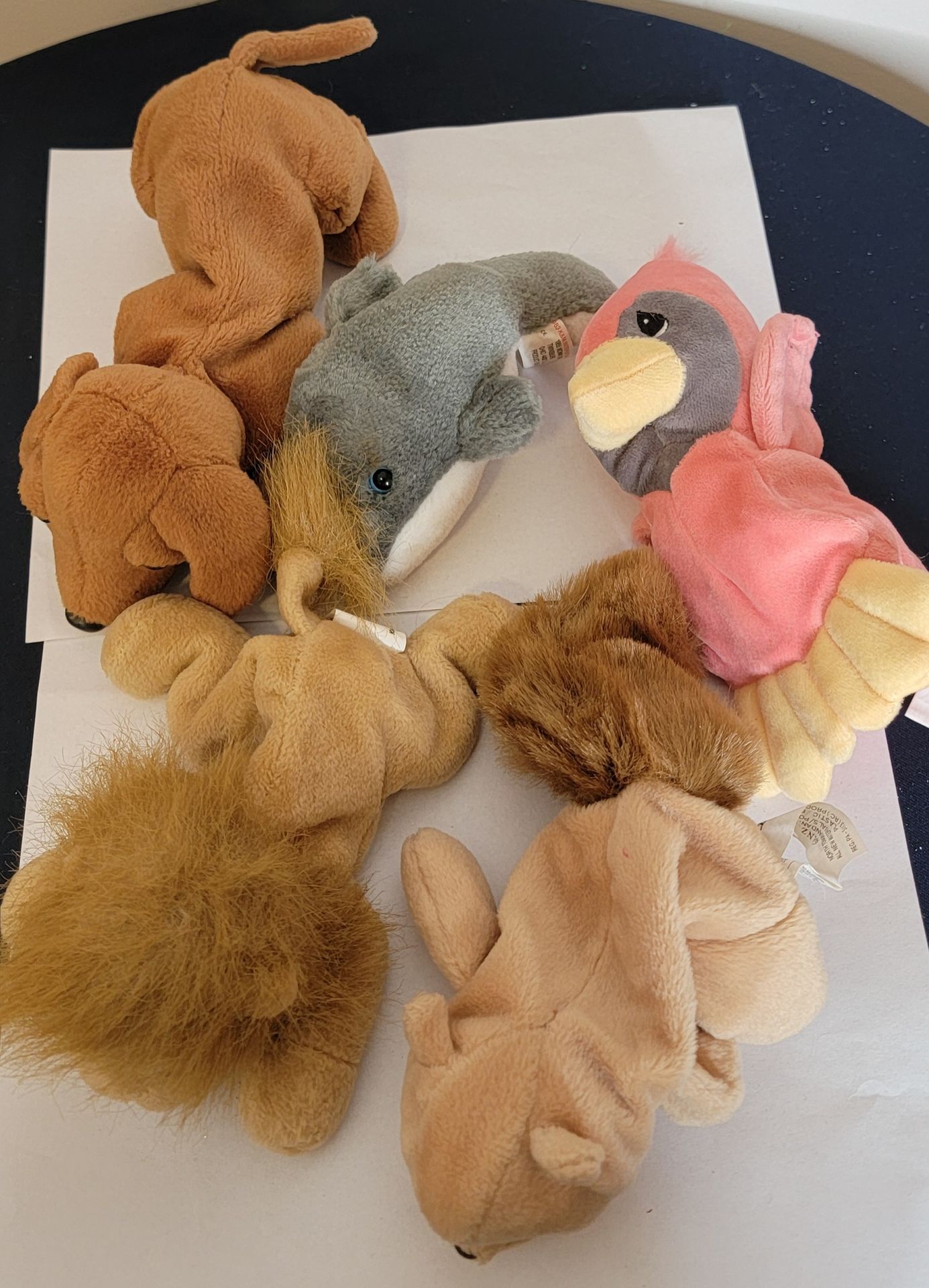 Selling a nostalgic lot of 6 vintage bean bag plushies from the mid-to-late 90s. All are in great vintage condition with original tush tags attached. These were popular competitors to Beanie Babies and have that classic floppy, "bean" filled feel. Included in this lot: "Snoops" the Brown Dog – Authentic Russ Berrie & Co. (Item No. 1806). Cardinal – Precious Moments "Tender Tails" (1998) featuring the iconic teardrop eyes. Beaver "Jacry" – Ganz (1996). Dolphin – K&M International the Lion – Kellytoy. Condition: Pre-owned, vintage. Tags are intact and legible. Clean and from a smoke-free home. Pickup in Summerfield Cash and venmo accepted