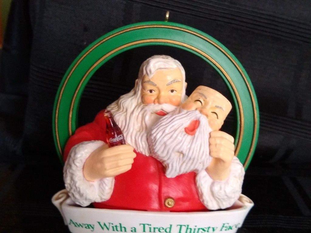 Vintage Coca-Cola Trim-A-Tree Collection "Santa with Mask" Christmas ornament, MIB, circa 1933, released 1992, original box with price sticker and plastic insert, from a smoke free/pet free environment.