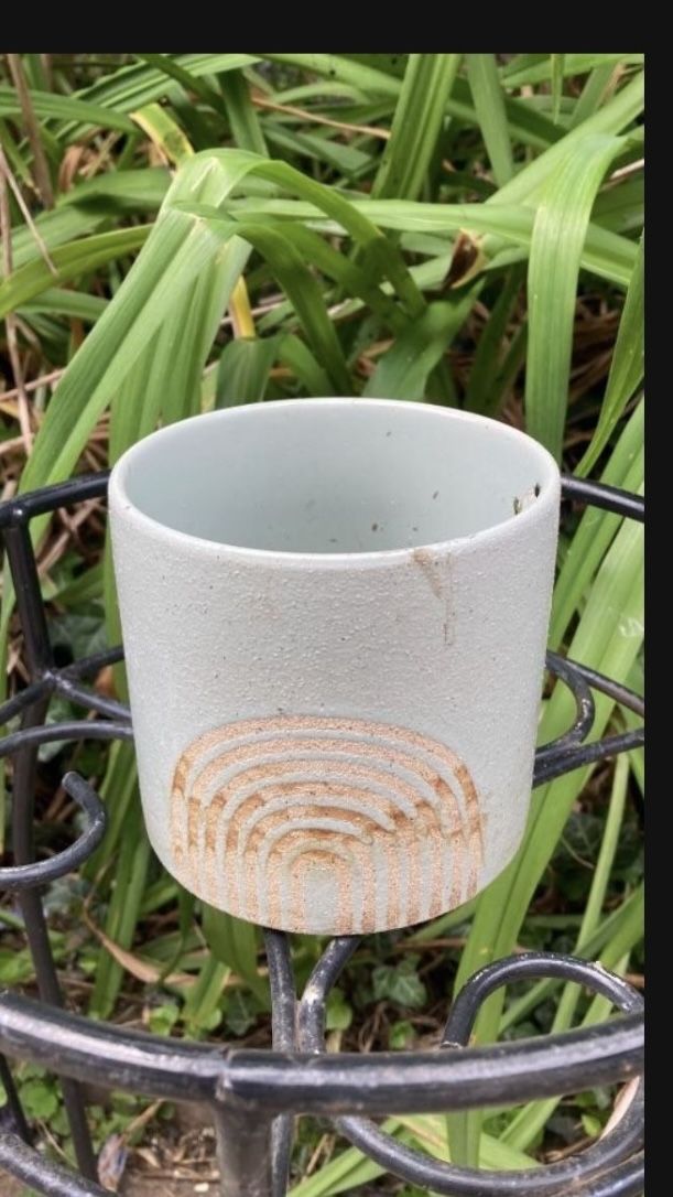 LASCO ARCHES planter. Small robin egg blue sandy stoneware plant pot with arch rainbow design. No drain. 4-1/2” x 4” tall. No cracks or chips. Very good condition. Asking $6. Pick up in Glendale Heights. Check out my other post please for Easter more summer planters and pots.