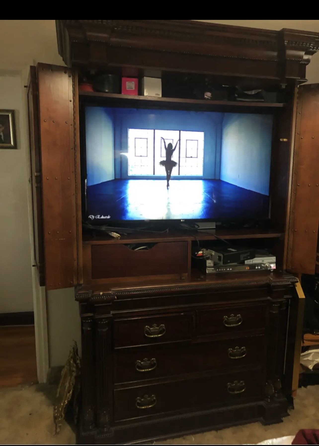 Wood traditional style Armoire this cutie is been with me for about 2 year pre love unfortunately we have to move to smaller apartment and need to let go pls look at the pictures for more info any questions don’t hesitate to ask