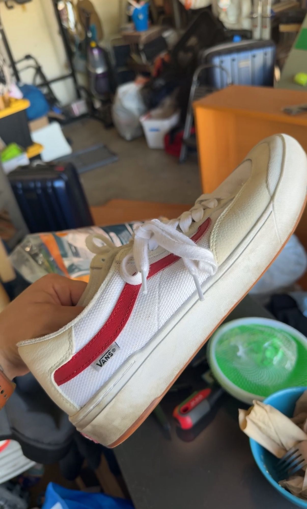 Vans Men Berle Sport Vintage Leather/Mesh Sneaker in Awesome White/Chili Pepper