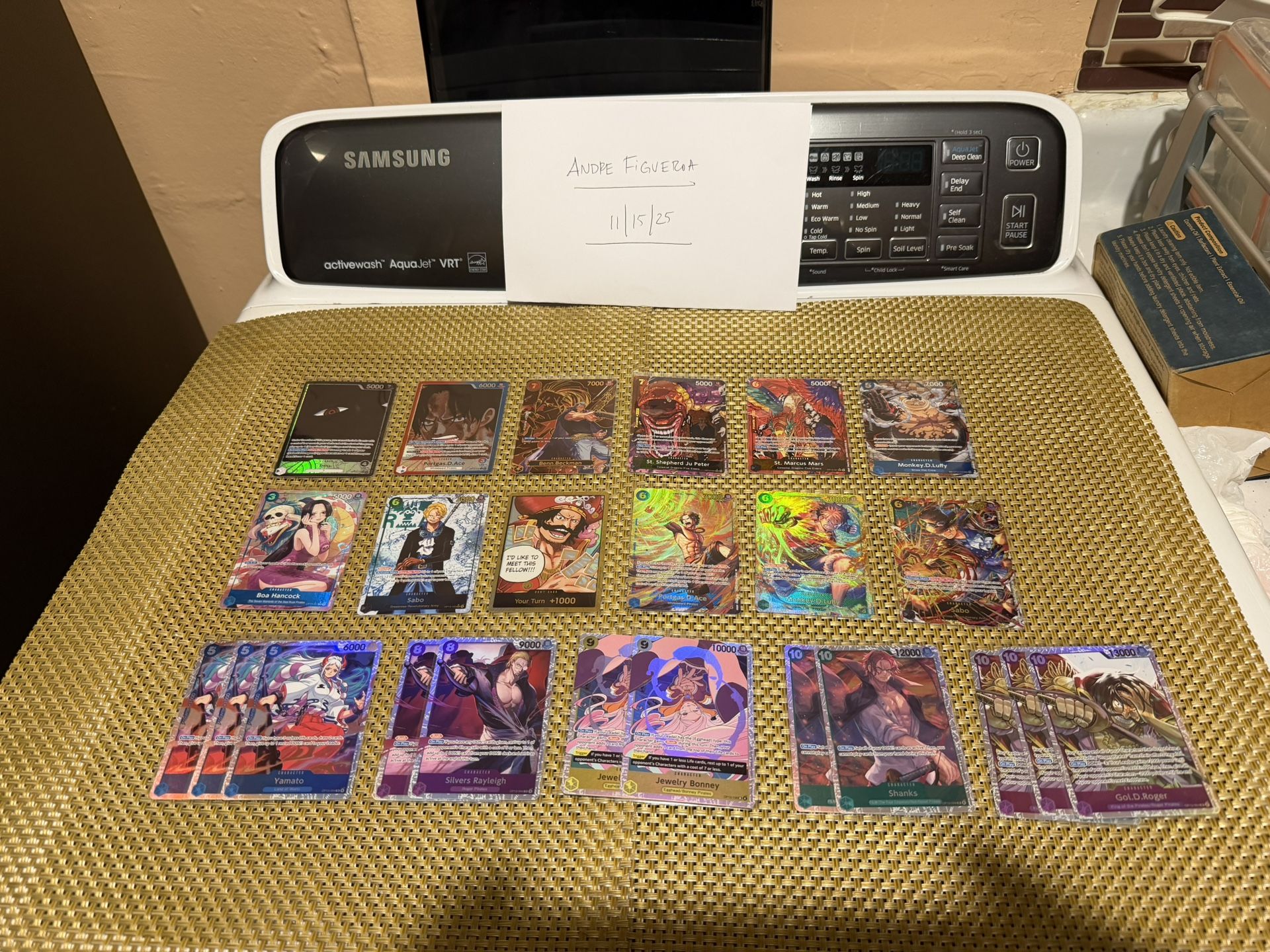 Have a handful of One Piece TCG lots for sale. Looking to move as is. Happy to share lists but didn’t want to list out everything to keep the post clean. Feel free to reach out if you have any questions! OP11 TCG Value: $38.78, LF: $25 OP12 TCG Value: $203.90, LF: $175 PRB02 TCG Value: $363.19, LF: $315 OP13 TCG Value: $457.11, LF: $400 EB03 Prices - Nico Robin [SP] EB03-055: $140 - Nami EB03-053: $10 - Trafalgar Law [Alternate Art] EB03-062: $15 - Hibari [Alternate Art] EB03-008: $9 - Nico Robin EB03-055 (2x): $5/ea - DON!! Card [Nami]: $5 - DON!! Card [Uta]: $5 - Perona EB03-045: $2 - Uta EB03-003 (2x): $2/ea $1050 for a