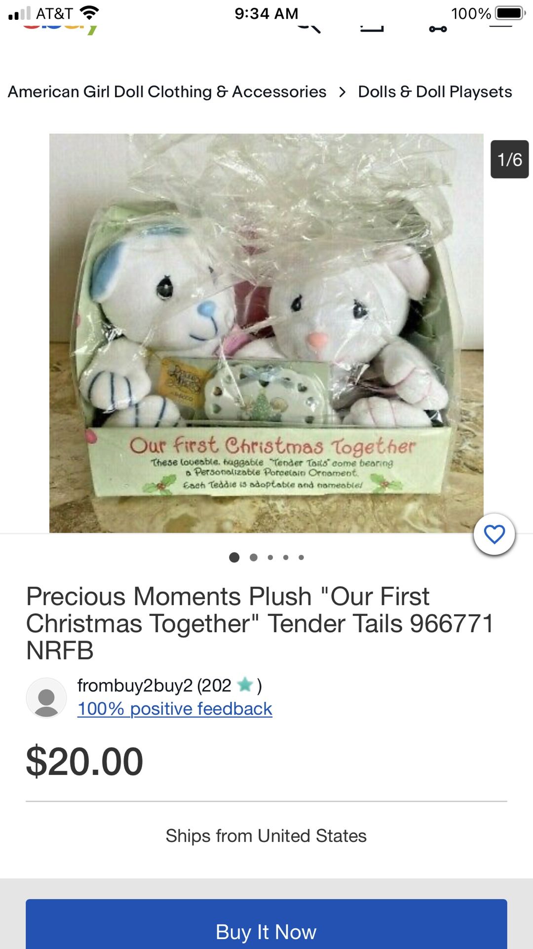 Never opened 1998 precious moment tender tails… Our first Christmas together. Hard to fine would make a great gift for someone’s first Christmas!