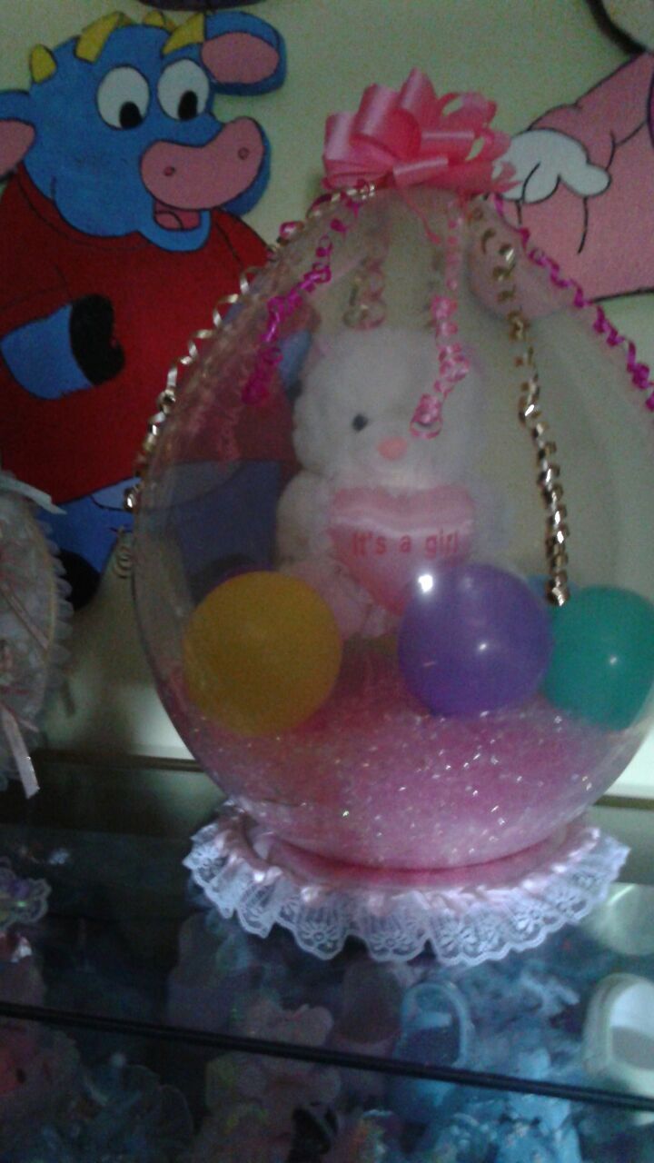 Stuffing on balloon for centerpiece.