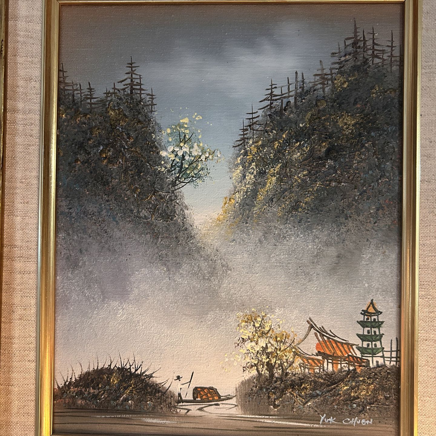 Painting is 9 1/2 x 7 1/2 inches/. Frame is 15 x 13 inches