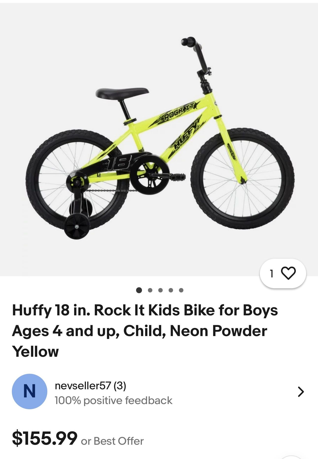 This is a brand new fully assembled Huffy rock it 18”inch with training wheels and fully assemble… It has never seen the outside street or wrote on at all assembled it put it together for my nephew that was coming to visit .. and my sister got sick and was not able to come… So here’s a brand new bike for someone and saving you all the trouble of assembly. We paid over $150 for it as you can see on eBay. It’s rated excellent for quality safety and is a good strong durable little bike for any starter training wheels come off super easy as well… Bike comes from a smoke free pet free environment ! All the specifications are in the pics and as you can see we put it together and even took a picture and sent it to my sister… great bike for boys or girls children kids training wheels assembled starter bike bicycle new… child