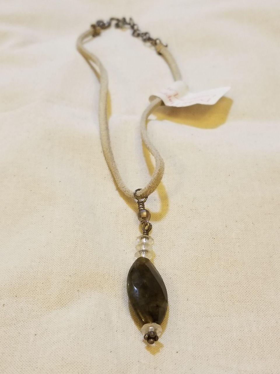 Brand new. A rustic pale grey leather cord and a metal chained necklace. States that it's made with leather, lapis and opalite. Leather is 15” long. Pick up at Kimball Park National City CA, 91950. Shipping available with additional cost. PayPal | CashApp | Venmo | Cash