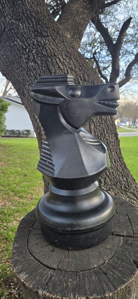 The Rolly Toys Large 18" Giant Oversized Chess Game HORSE Knight is a vintage manufactured game made in Germany. This oversized chess piece would make a unique addition to any traditional board game collection, especially for those who enjoy vintage games or German craftsmanship. Its large size would make it easy to see and handle, providing a fun and engaging experience for players of all ages.