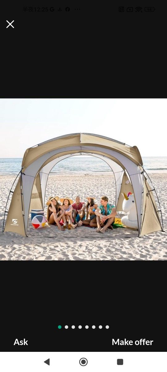 Beach Tent 12 X 12ft Large UPF50+ Pop Up Canopy with 2-Pcs Side Wall, Sun Shelter Rainproof, Waterproof for Camping Trips, Backyard Fun, Fishing, Parties, Or Picnics(Khaki-Upgrade) Material Polyester Color KhakiH-Upgrade Item Weight 23 Pounds Recommended Uses For Product Beach, Hunting, Party, Picnic, Camping & Hiking Product Dimensions 144"L x 144"W x 90"H Roomy Shelter: The 12-ft canopy provides 144 square feet of activity space. With a height of 90 inches, it comfortably accommodates 7-10 people Sun Protection: camping tent features UPF 50+ to block harmful UV rays and prevent sunburn. The 195T taffeta with an 800MM coating ensures privacy by making the tent opaque from the outside Cool and Breathable: sun shelter features 4 large doors and comes with 2 sidewalls that can be freely combined. The top ventilation openings ensure continuous airflow Waterproof: camping shelter seams are professionally treated with a PU coating to prevent leaks, ensuring that water does not enter the tent Stable and Windproof: To ensure the tent's stability, we provide 12 ground stakes and 4 guy ropes to secure the canopy, keeping the tent stable even in strong winds