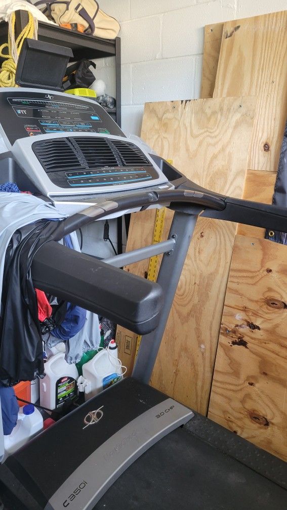 If it's posted. It's available. It's in good condition and gets the job done. Has iFit technology, fan, and holds water bottle. The belt is 57 inches in length and 20 inches width. Pick up only.