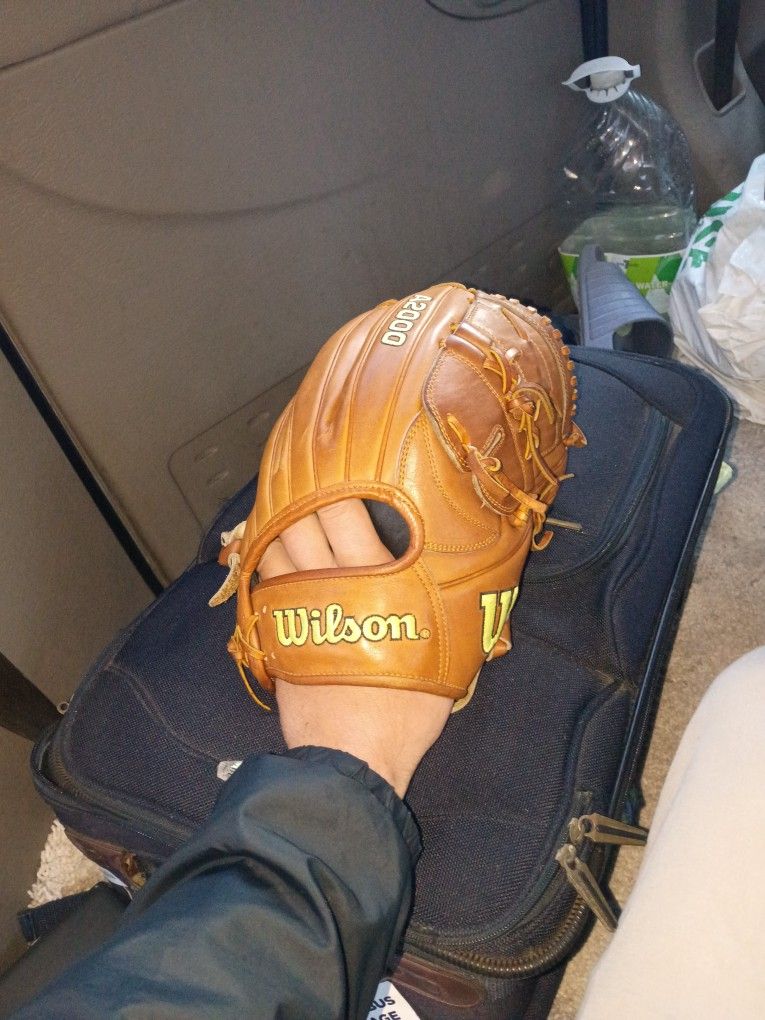 Like new. Broken in slightly. 2 piece pocket adds protection for pitcher from hitter looking in glove. Yellow with black outline stitching. Most beautiful glove I've owned.