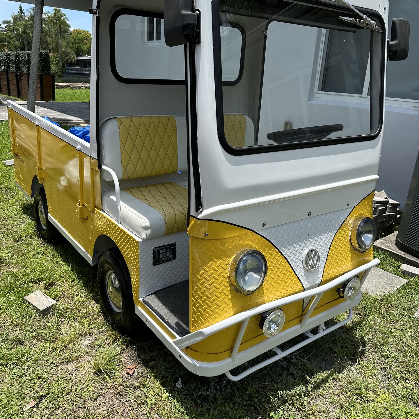 This tug is a beautiful and functional vehicle. It is freshly painted. Battery powered. ( vehicle batteries not included) Removable side walls. Great towing power. Great opportunity for use as a food truck or display cart.