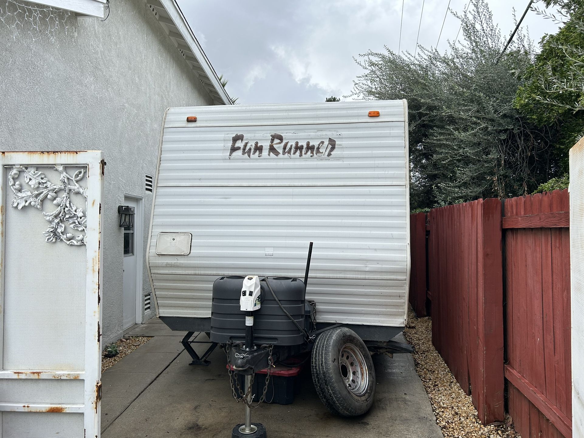 24ft toy hauler, we have out grown it. Everything works, no leaks, new tires, batteries are 3yrs old, 6gal water heater, a/c, propane heater, fridge, microwave and t.v. Updated the interior a couple years ago. Deep kitchen sink, bed lift is motorized, high flow shower head with stop flow button.