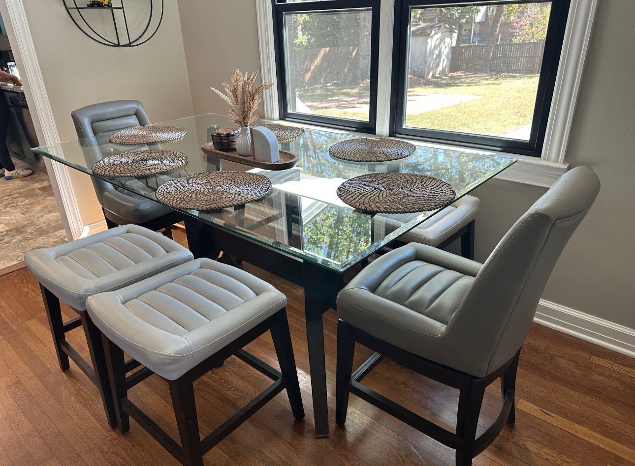 I am selling this nice dining room set. It is a very nice 6pc high top dining set. Please feel free to ask me any questions.