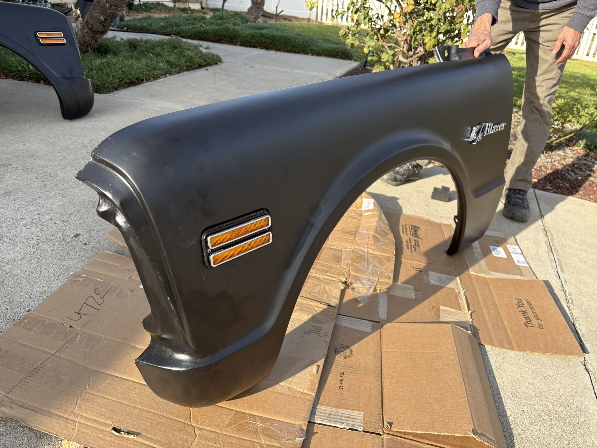 New (just mounted) C10 fenders or Blazer fender 69-72. Currently have rights and left $200 each. Emblem and lenses not included. Keep in mind aftermarket parts usually don’t fit 100%.