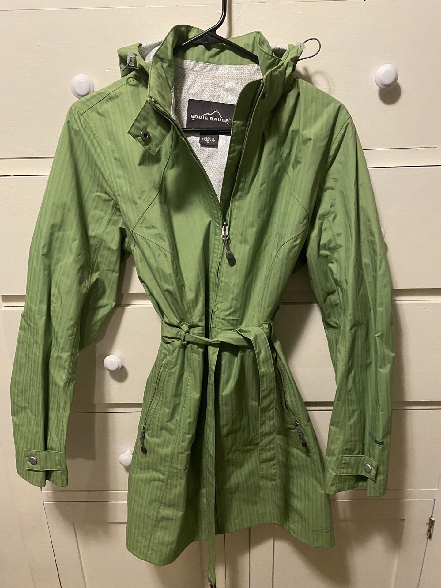 Eddie Bauer weather edge rain coat - trench length. Like new.m, hardly worn. Bright spring green.