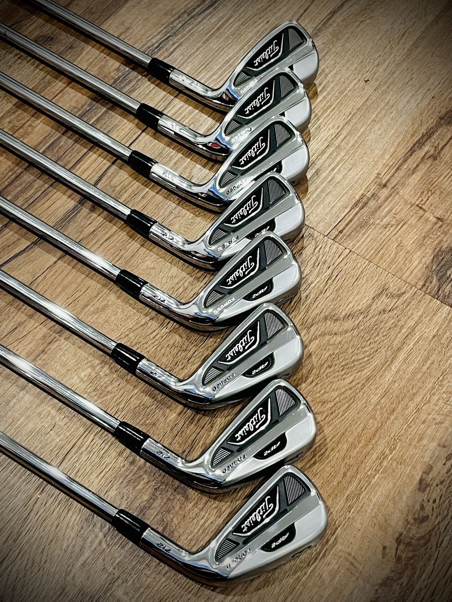 Titleist 712 AP2 7pc Iron Set 3-PW With New Golf Pride CP2/MCC Midsize Grips Dynamic Gold S300 Stiff Shafts. Iron set is in really good condition.
