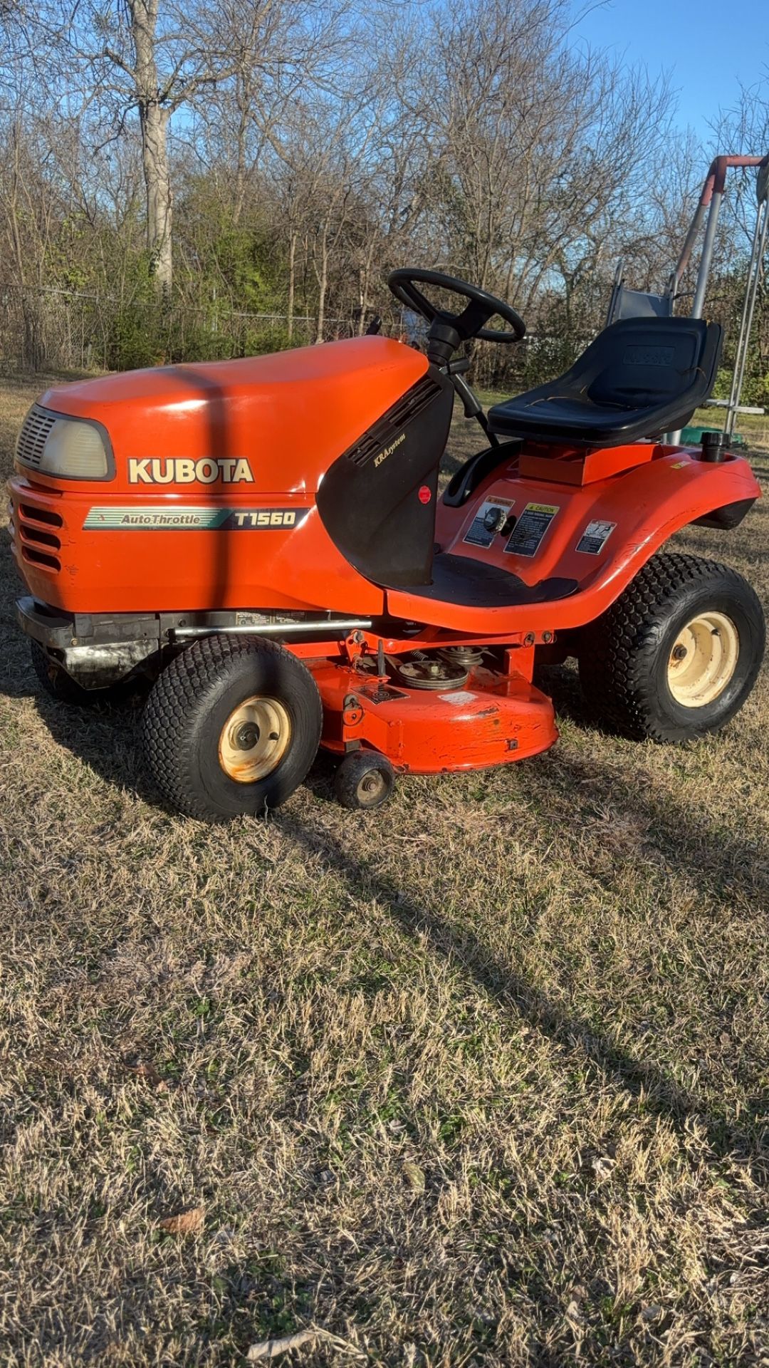 Selling my Kubota riding mower t1560 this machine turned on in the first crank has no issues mechanically wise only thing is the blades stay engaged but it works . It is a 1997 model. Everything on this machine is original. It has an original 15 hp Kubota hours are unknown paint is not perfect, but it is an old machine so it has some scrapes and scratches but motor wise and transmission wise. It is a very faithful machine ready to work.