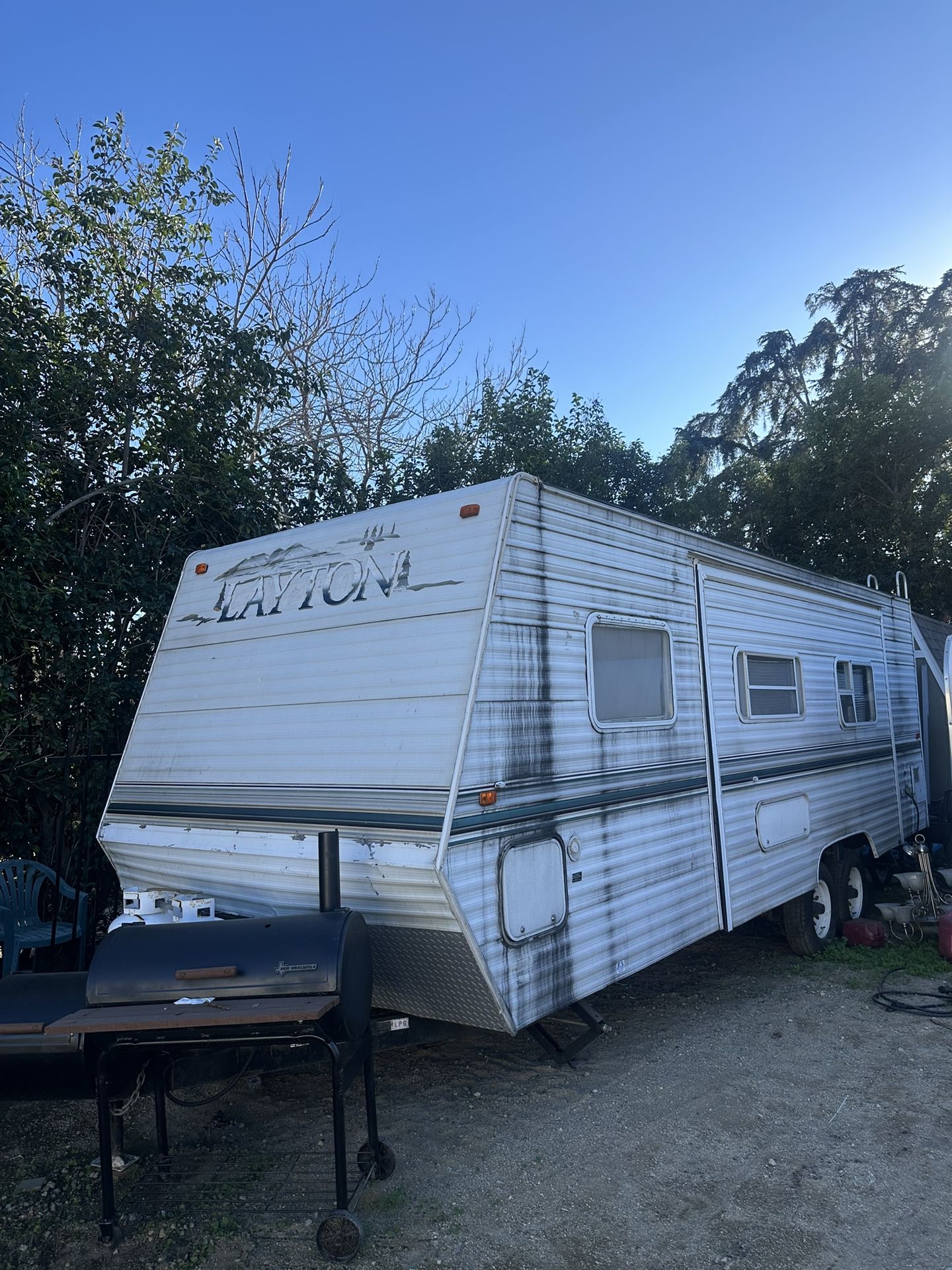 If you’re looking for an affordable place to live, a rental park setup, or a solid camper for weekend trips, this trailer is a great option. Everything works and it’s ready to tow. Clean title in hand. The inside is in good shape with tons of storage, a private front bedroom, and a full kitchen. Exterior could use a wash and light cosmetic touch-ups, but the structure is solid. Features: Clean title Everything works (power, lights, fridge, microwave, stove/oven, outlets, etc.) 26–28 ft travel trailer Private front bedroom with storage Sofa + dinette for extra sleeping Full kitchen (Dometic microwave, 3-burner stove, oven, sink) Bathroom Dual axle – tows stable Awning frame included (fabric weathered) Skyline quality build This could be used for: Living space in a trailer park Backyard rental unit Starter camper Guest room on a property Affordable housing option (way cheaper than LA rent) Trailer is older cosmetically on the outside, but the interior and systems are solid. Ready for someone who wants a reliable setup without spending crazy money. Asking: $6,000 OBO Open to reasonable offers for it to go to someone who will use it.