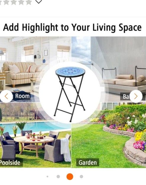 Folding Mosaic Side Table 14 in. Blue 22 in. Round Ceramic Tile End Table Light