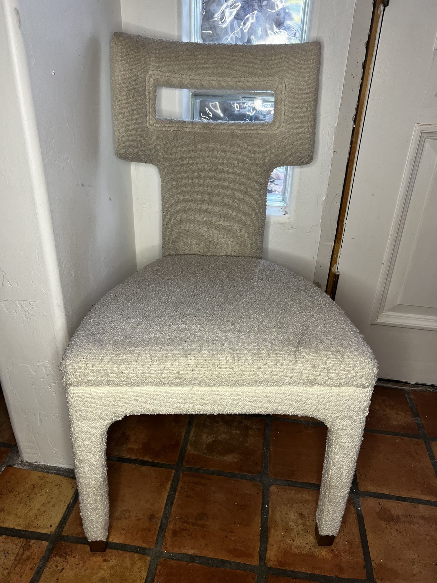 Boucle Chair with Three legs..Have Gold Metal Coners on the Bottom of Legs.. Needs some cleaning as shown in photos.. 🌵Pickup Location N Central & Dunlap