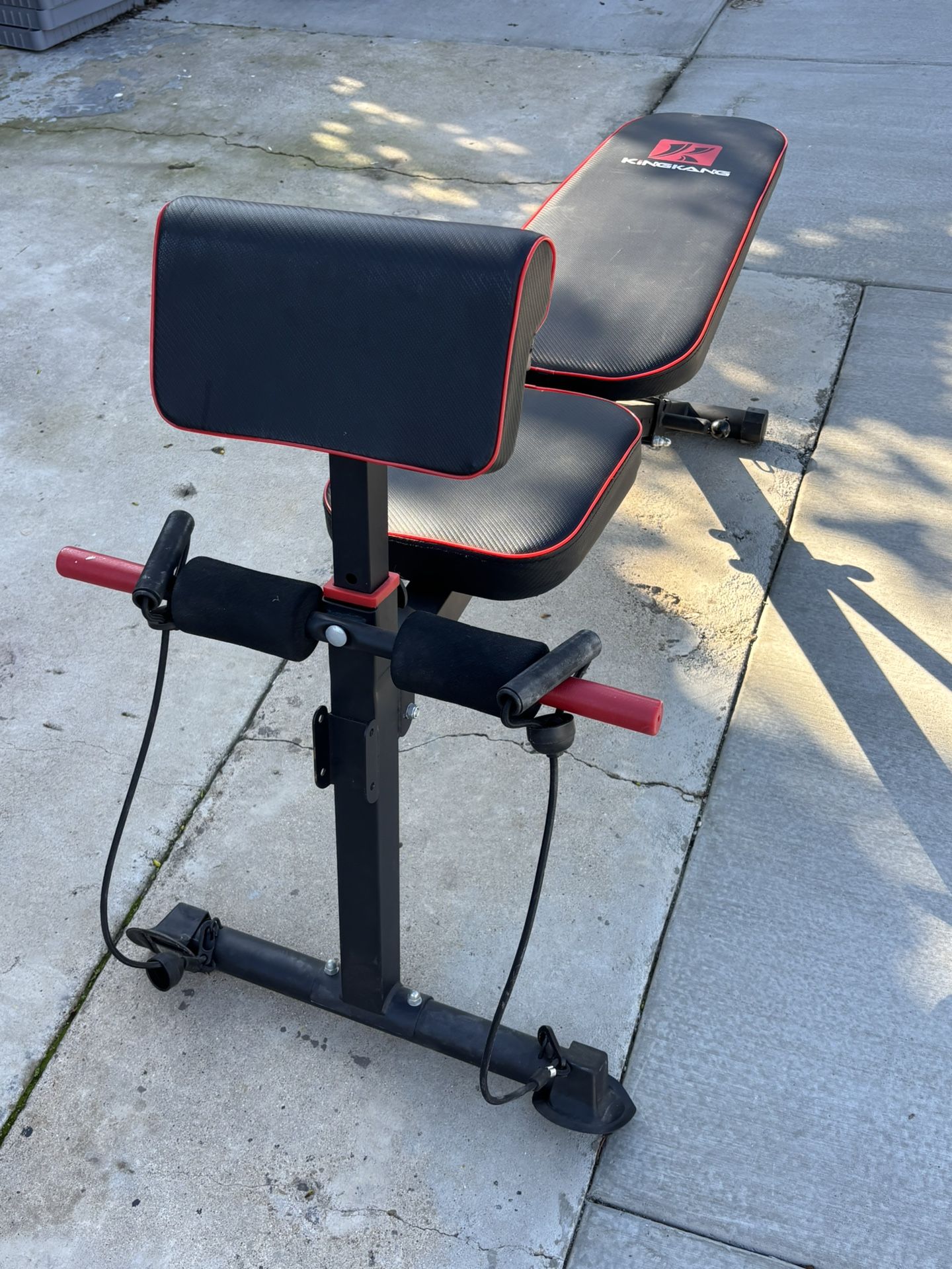 Kingkang Exercise Bench . Adjustable, with resistance grip. This retails for $150 New. This was given to me but I already have a bench. Asking $50. 00 local pick up in Santa Ana.