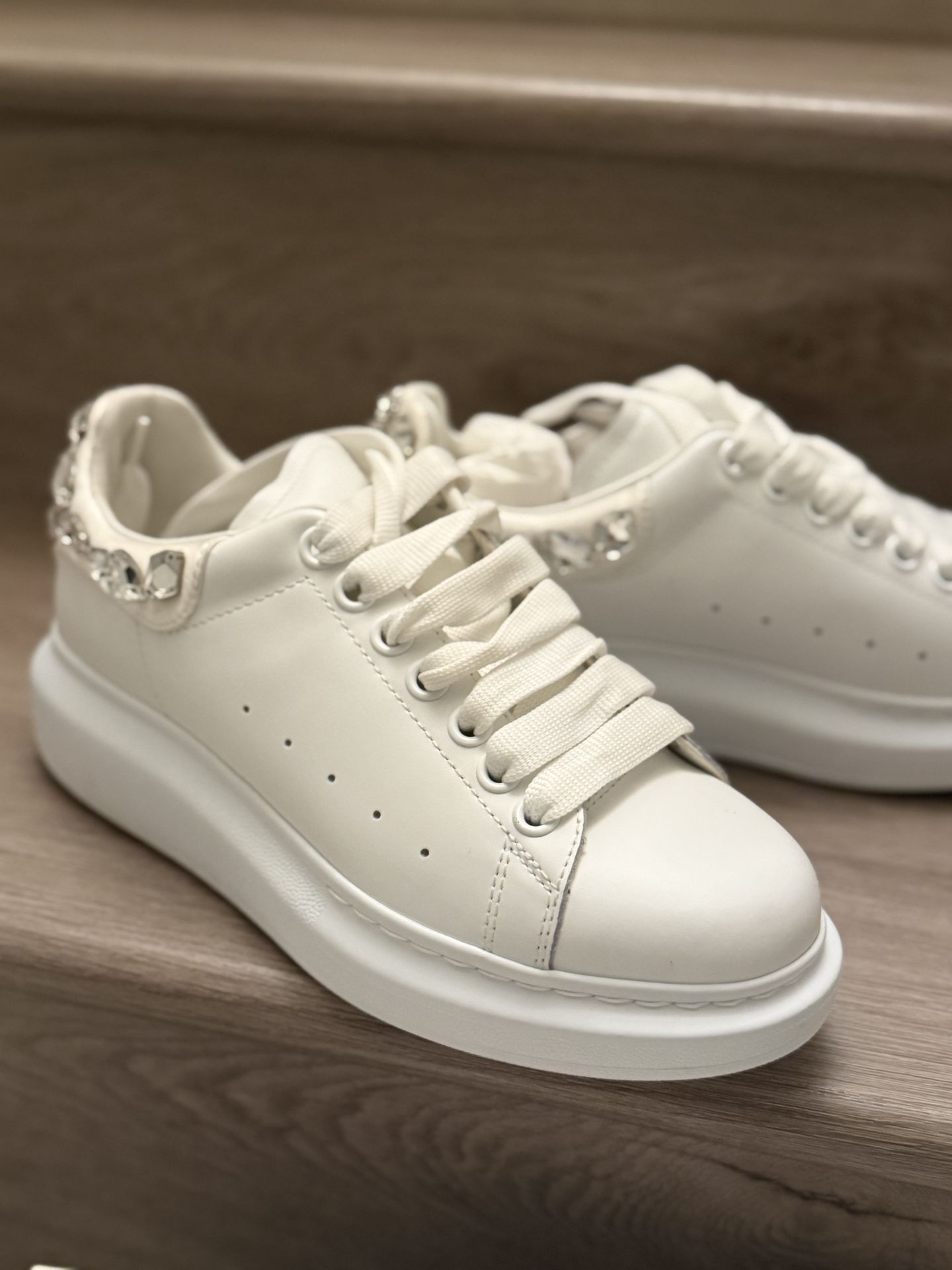 Alexander Mcqueen White Larry Crystal Detail Sneakers Size 8 (MSRP $1,150)