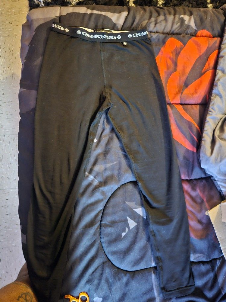 Black leggings from Chrome Hearts. Waist size 76-84cm=MEDIUM. Includes original box. BRAND NEW NEVER WORN . Brought this size and it did not fit me
