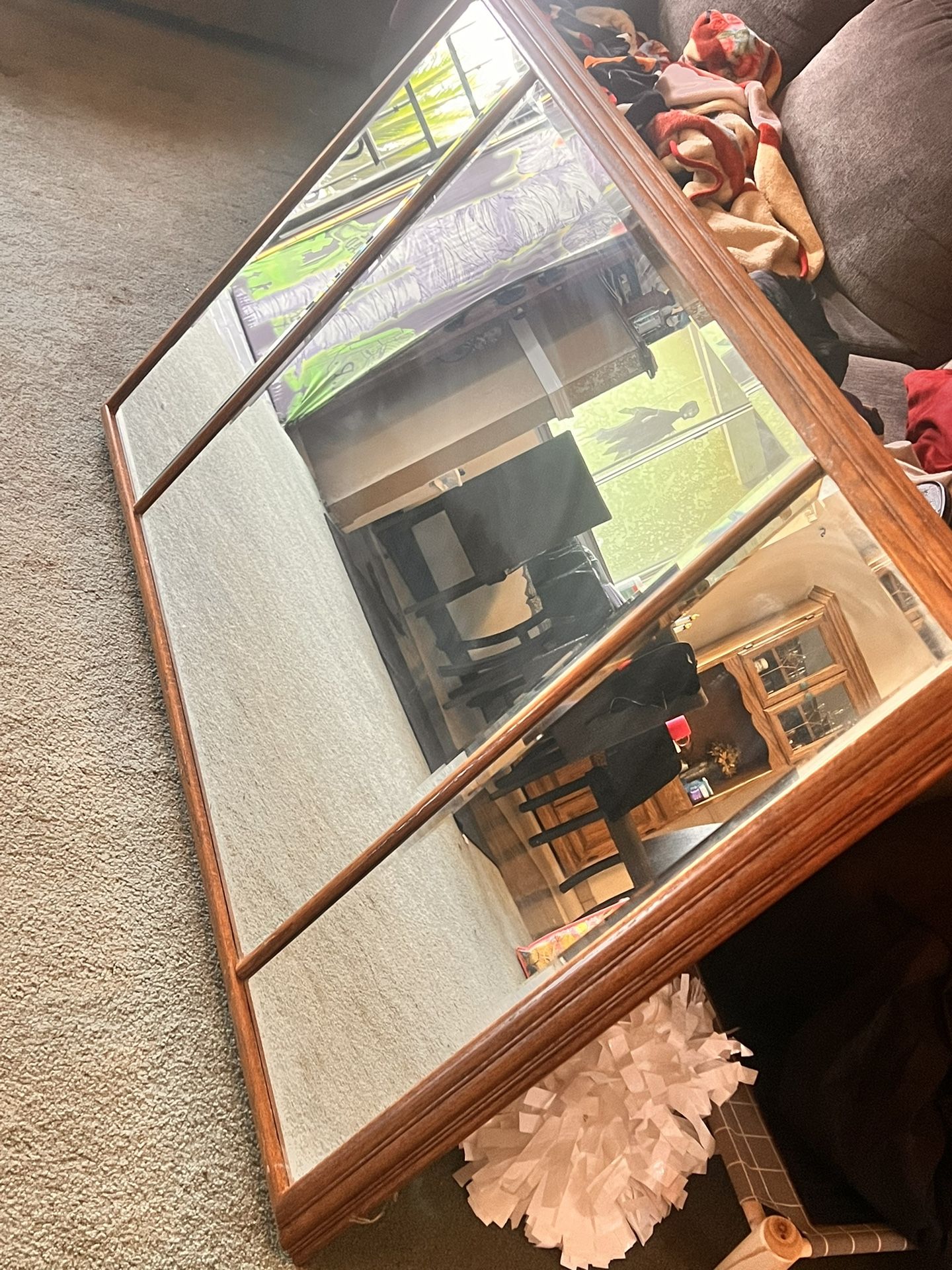 Nice big wood mirror getting rid of cause its just sitting in my storage room
