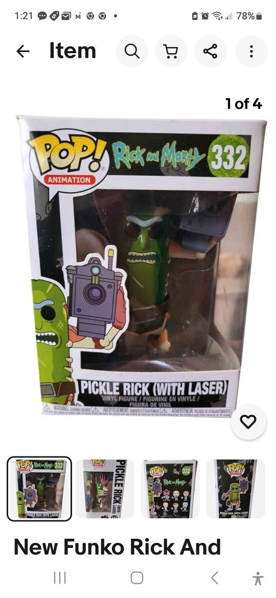 New Funko Rick And Morty Pickle Rick with Laser 3.75in. Pop Vinyl Figure