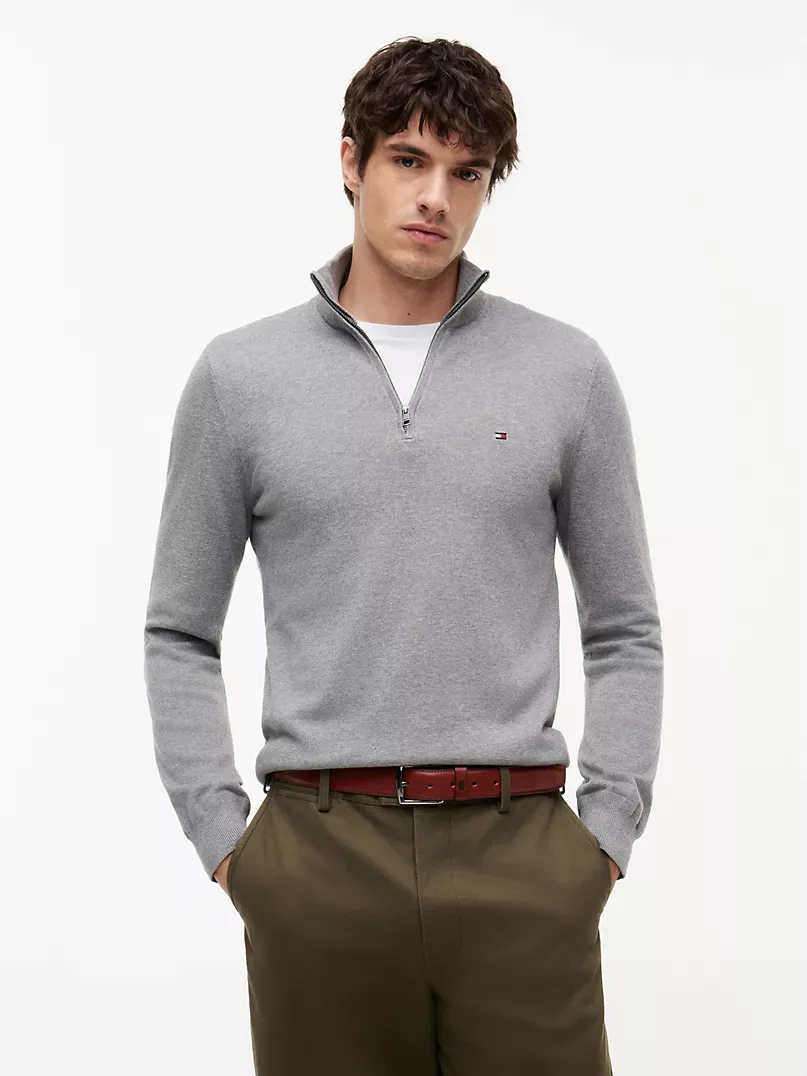 Tommy Hilfiger Sweater Mens Gray Quarter Zip Pullover Knit – Size Large