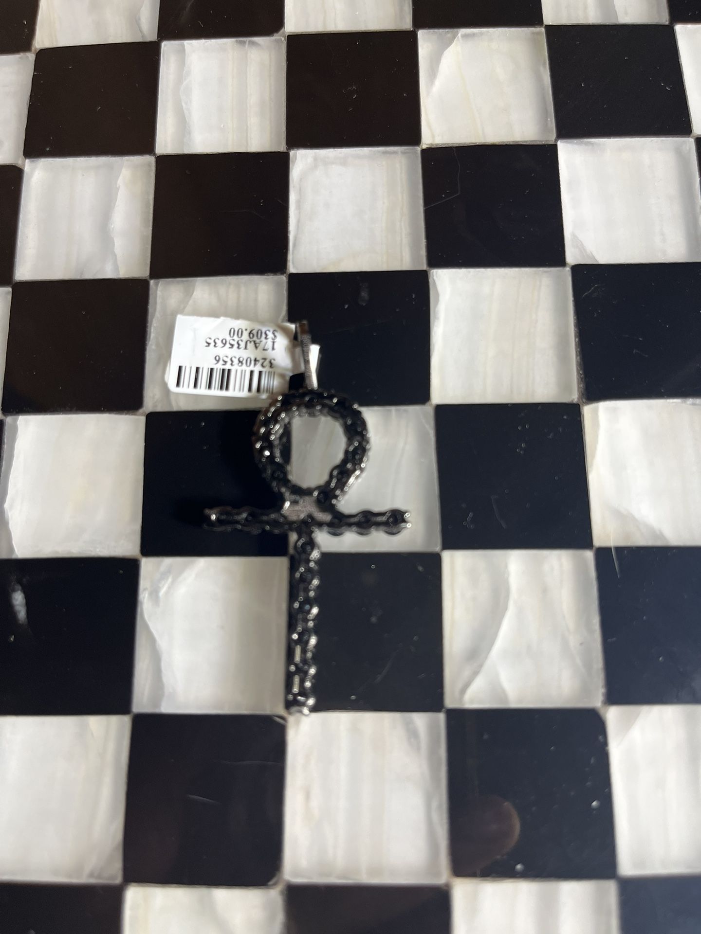 Rare brand new ankh on black sterling silver onyx and diamonds