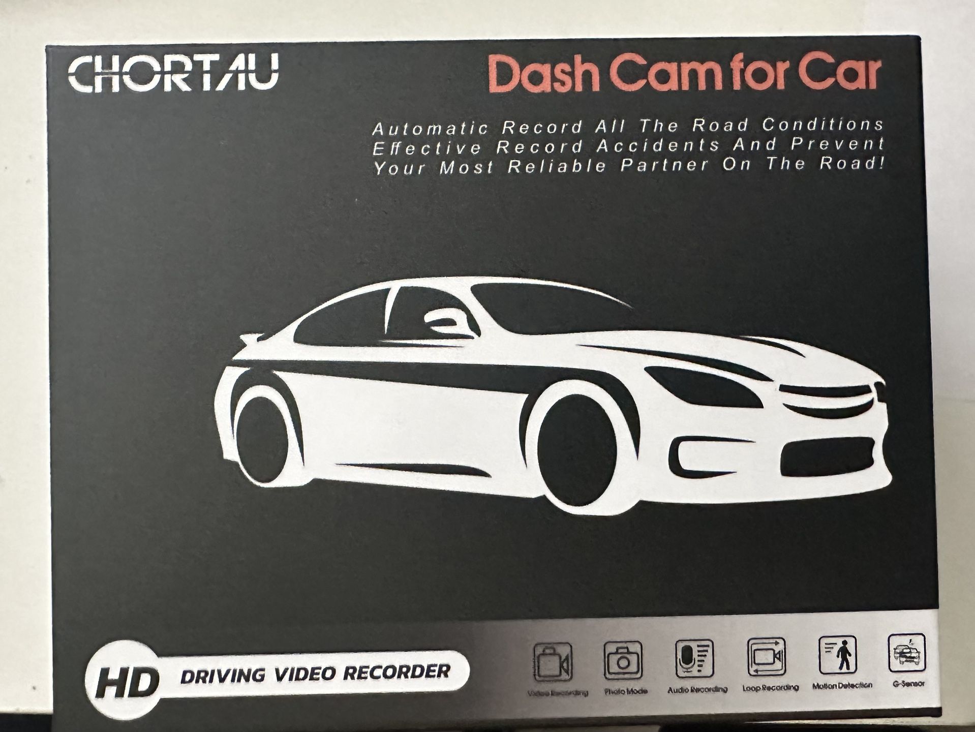 CHORTAU B-T27 dual lens HD 3.2” dash camera, automatic recording.