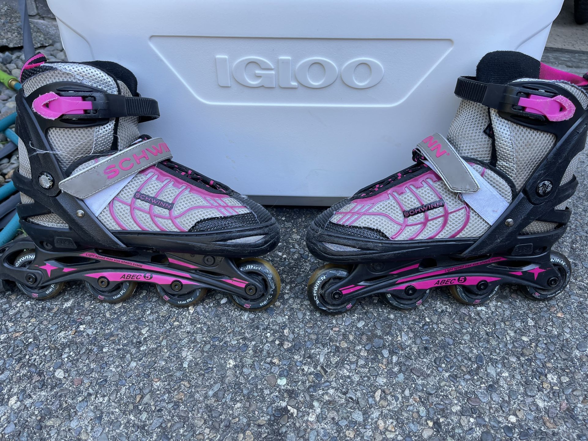 Girl rollerskates adjustable, size 5-8, have some scratches but working fine