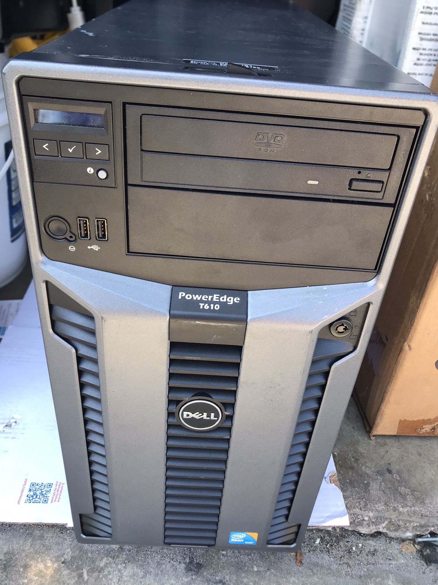 Dell PowerEdge Server T610 with 7 Hard Drives 300GB each Powers on but you have to program for your needs or used for parts. Selling hardware only Small dent on top front of case.