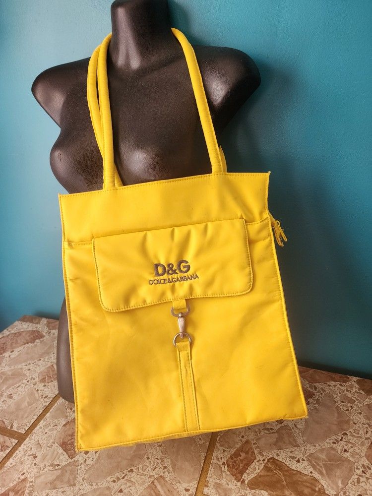 NEW, D&G/Dolce & Gabbana tote bag. Yellow, with the D& G label. Zippered front and back compartments. $15.0