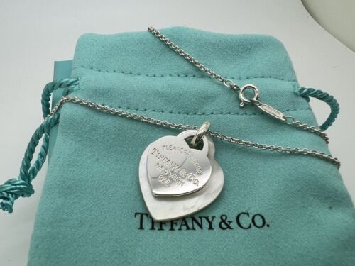 Tiffany Co Sterling Silver Mother of Pearl Double Heart Pendant Necklace, 16"