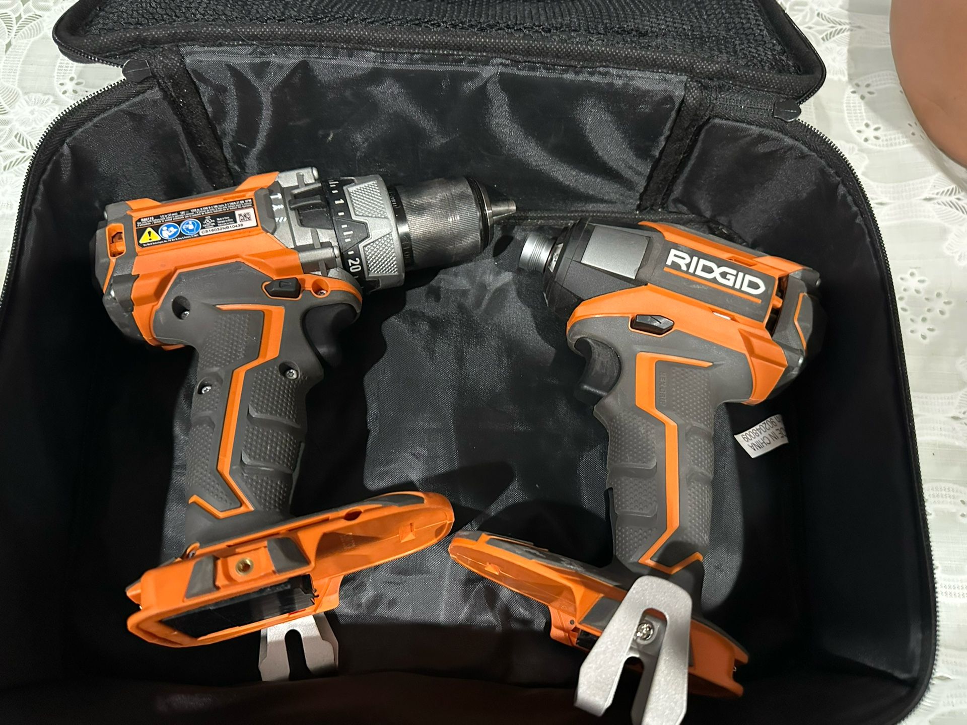 RIDGID IMPACT DRIVER AND DRILL PLUS CHARGER AND BATTERY AND CASE BACKPACK - Good Condition Works 230$ For All