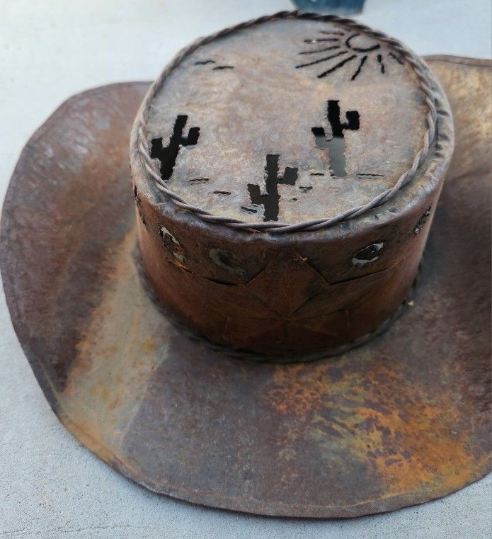 Large 3x4 ocotillo metal Wall hang. Metal bird feeder. 20" cowboy hat $40 for all. 19th Avenue and Dunlap