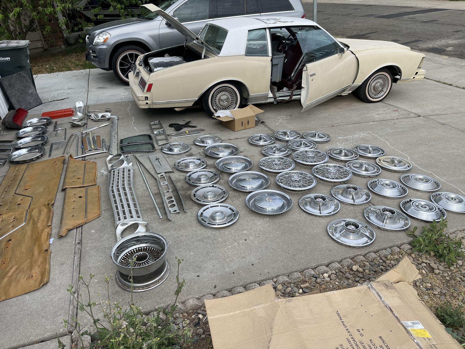 Many Impala moldings and hubcaps also some Cadillac and cutlass pieces but mainly 61,62,63,64,65 Impala stuff I do have other stuff not shown you see a part you need let me know 62 impala headlight bezels and grill $260 all 3 pcsSOLD 62 impala door panels all 4 pieces $550 SOLD 62 impala hood and trunk emblems $100 both pcsSOLD 61 impala hubcaps $280 63 impala ss hubcaps $160 few dings SOLD 64 impala hubcaps $125 SOLD 66 ss caps few dings $100 66 ss caps better condition $200 81-87 Monte Carlo caps $160 SOLD 15in Cadillac hubcaps $150 Cutlass glass 2 pc $125 63 Impala dashboard cluster SOLD LOCATED IN SACRAMENTO CALIFORNIA