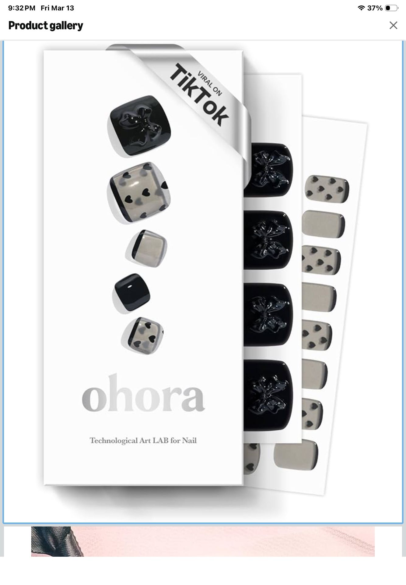 ohora Semi Cured Gel Pedi Strips (P Heart Lace) - Works with Any Nail Lamps, Salon-Quality, Long Lasting, Easy to Apply & Remove - Includes 2 Prep Pads, Nail File & Wooden Stick