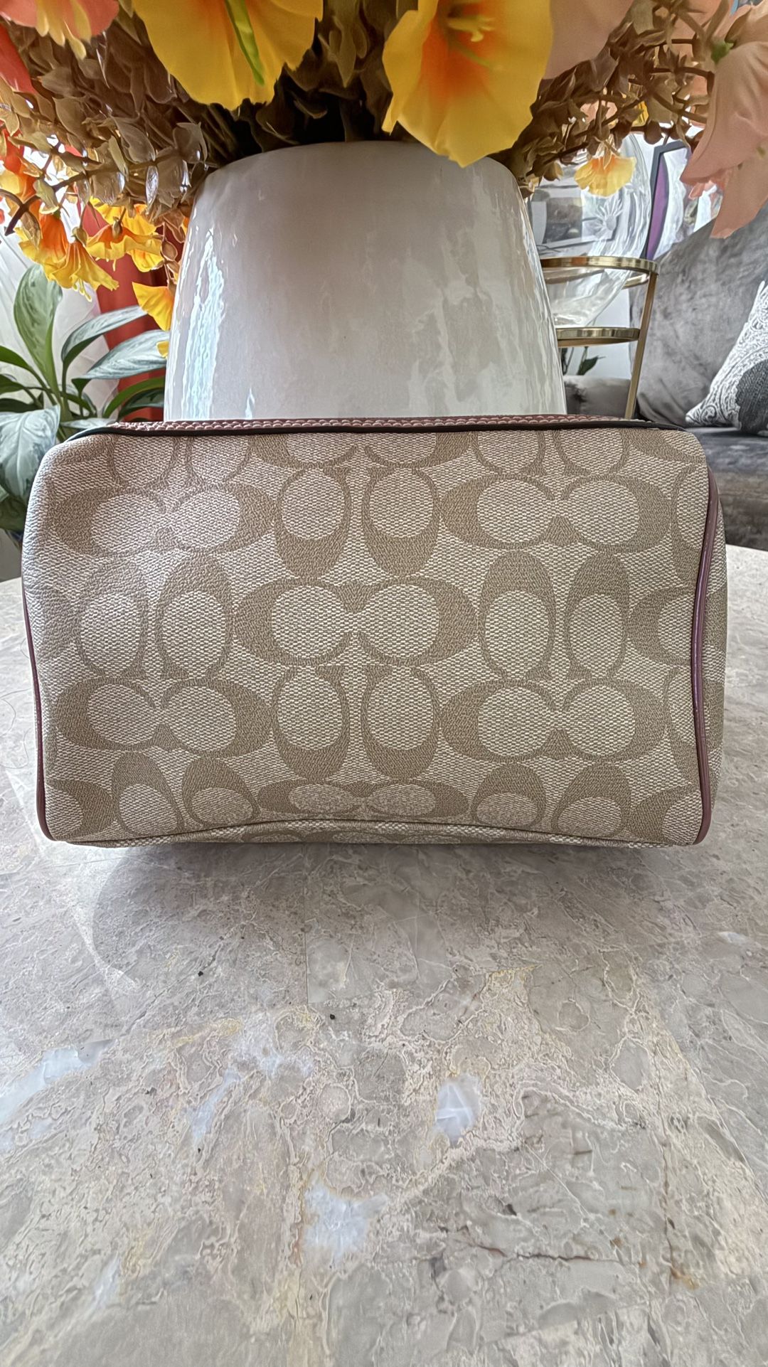 Stylish Coach cosmetic bag with signature canvas design. Perfect for organizing essentials.
