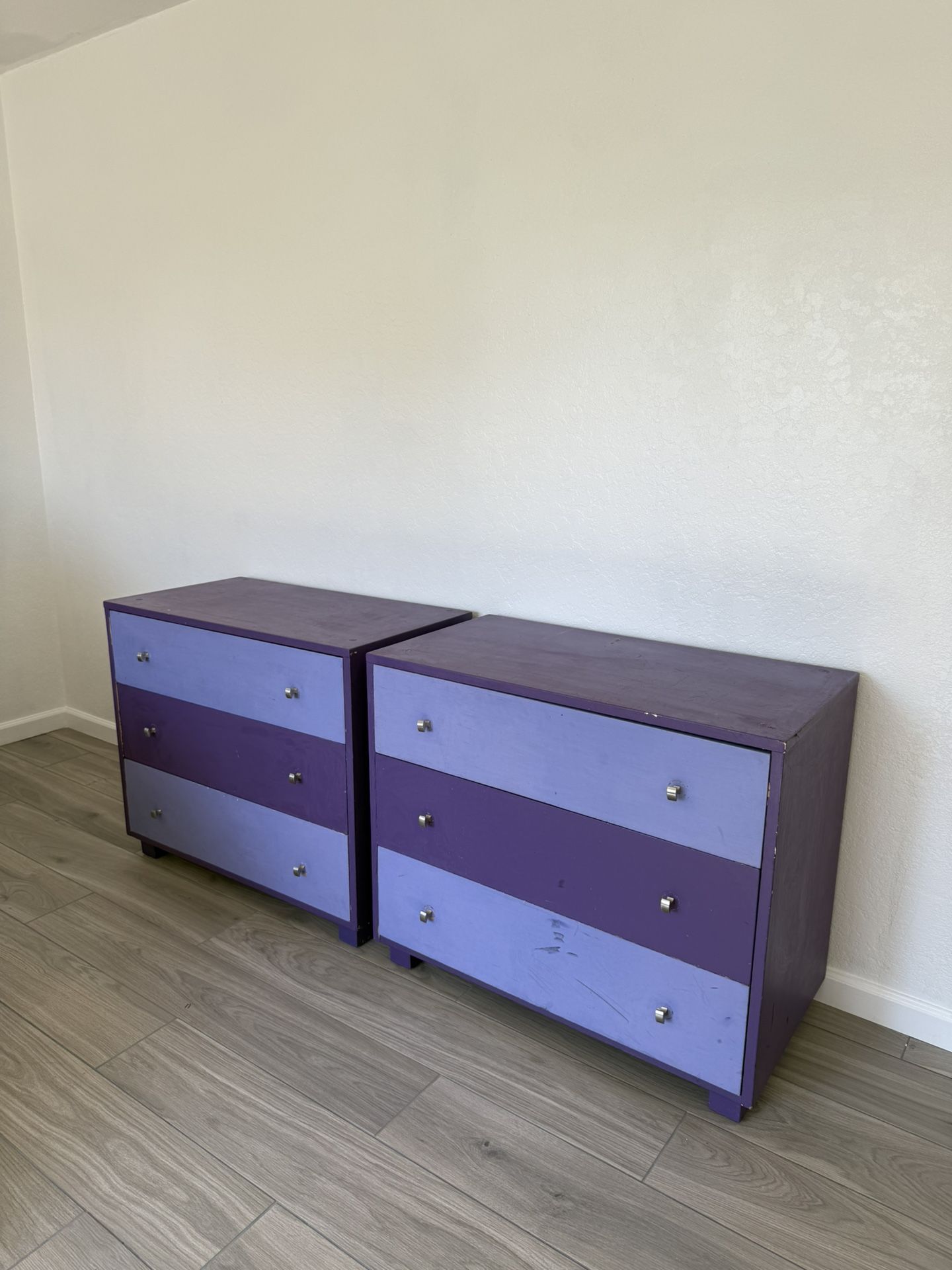 Good vintage condition with solid mid-century craftsmanship and dovetail drawers. Perfect as nightstands, matching bedroom dressers, or statement storage for a MCM space. Currently styled with a fun, quirky two-tone purple paint job, but they’d also make an amazing project if you want to bring the dawn oak back to life. $200 each or $400 for the pair. Dimensions (each): 36” L x 19” W x 30.5” H Pick up in Mira Mesa (92126) from a smoke-free, pet-free home. Delivery may be available for a fee.