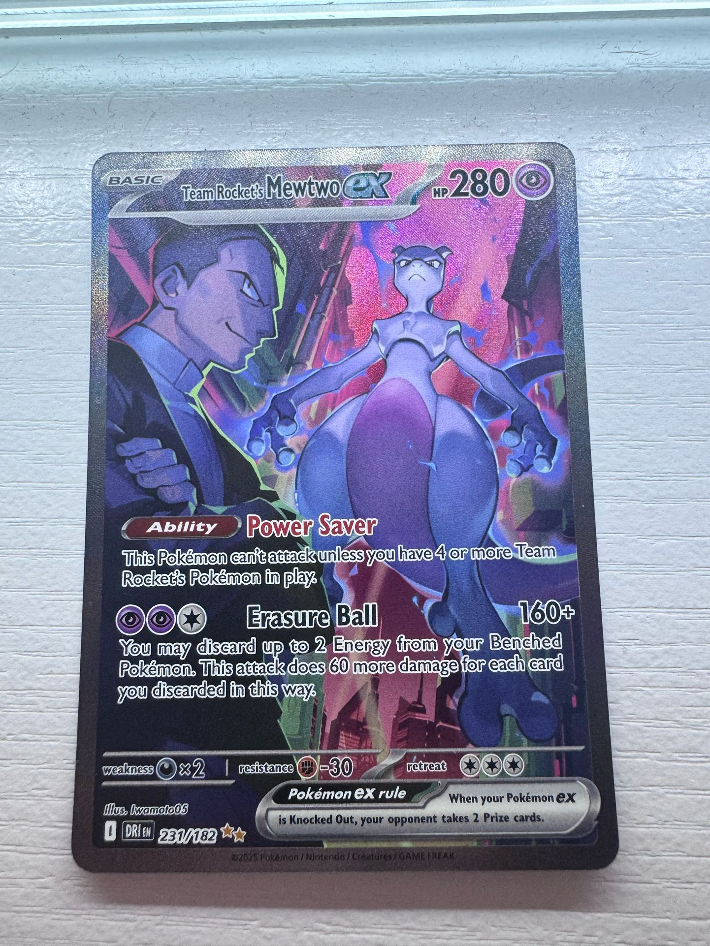 Hi all! Selling my Destined Rivals Team Rocket’s Mewtwo 231/182 (NM) for $570 I’m also open to trades at 80–90% in my favor. Local meetups preferred. Feel free to reach out with questions or offers. Thanks for looking!