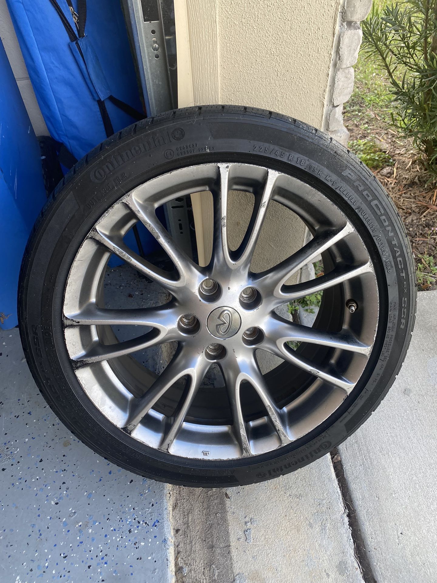 18” Infiniti rims for sale. Bought a different set so I no longer need these. Little curb rash on them. Will need one new tire the rest of the tires are good.