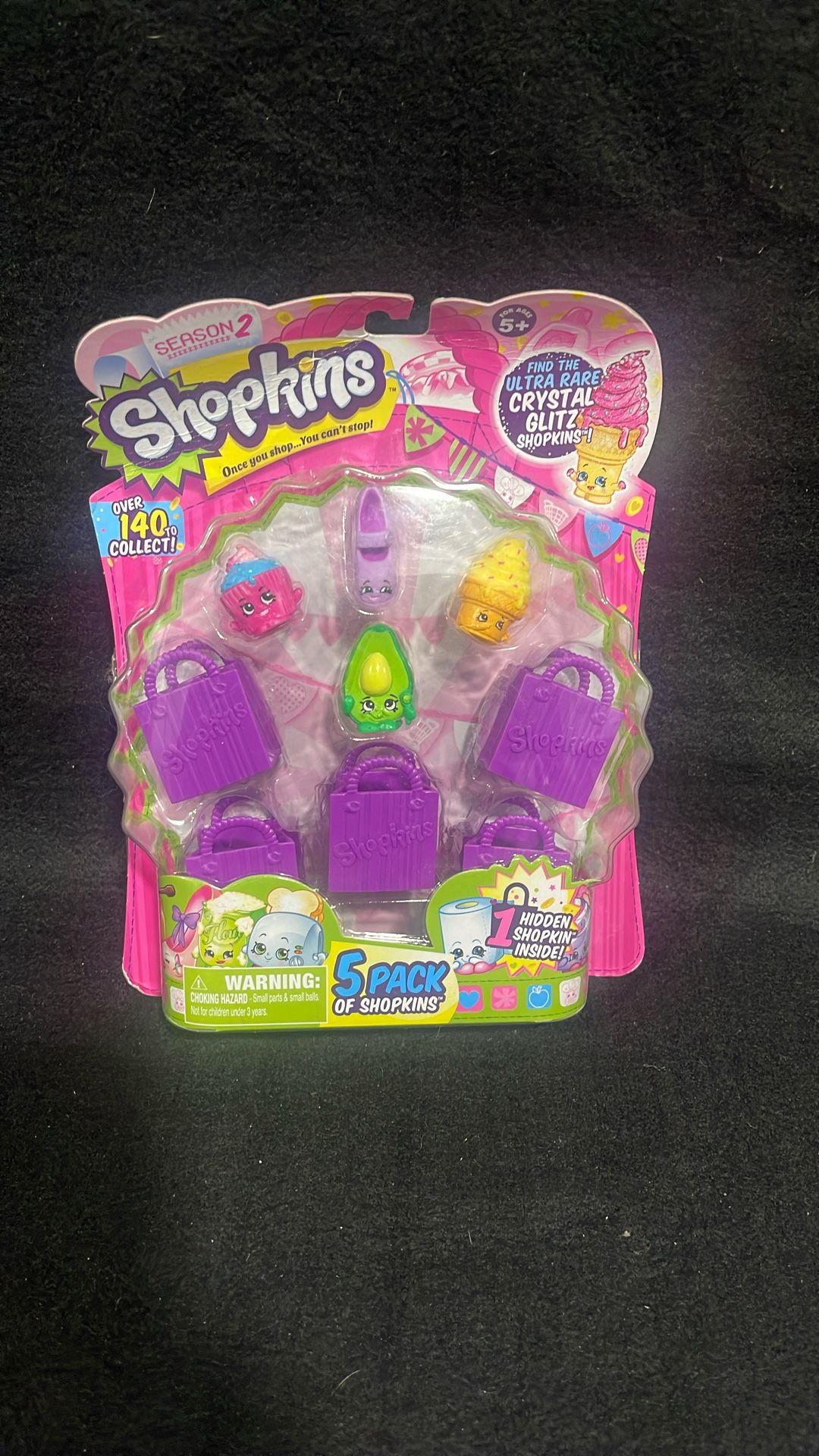 The Shopkins Season 2 5 Pack is a limited edition set of plastic figures from the popular Shopkins franchise. Manufactured in 2014 by Moose Enterprise, this multicolored set includes a mixed lot of figures from the Shopkins Season 2 series. Each figure brings a unique designer and urban vinyl theme to playtime, making it a must-have for collectors and fans of the popular toys. This original set is a fantastic addition to any action figures and accessories collection.