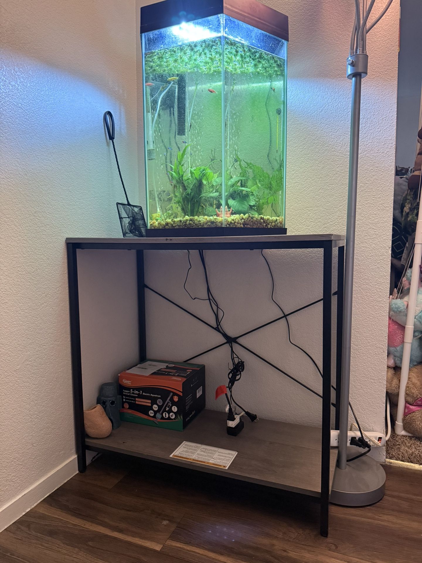 The aquarium alone goes for $120 at petsmart & the table ranges from $60-$140 at petsmart. It comes with fish already in the aquarium, it needs to be cleaned and i have the gravel cleaner to go with it just have not had time at all to care for these little guys. (I spent more than $200 for everything) I’m asking $200 OBO for the entire setup, including the fish. I’ve been too busy lately and don’t have the time to take care of them. Please message me if you’re serious about buying. Don’t ask if it’s available because if I’ve posted it, it means it’s still for sale.