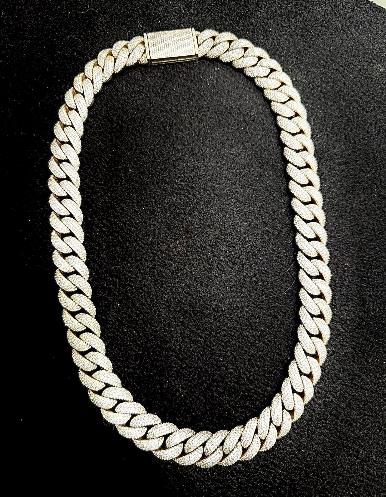 Silver chain Weight: 492 grams Purity: 99.9% silver I took it to get laser purity testing it came back with 99.98% which makes it fine silver, since it falls on 99%. Extremely beautiful chain amazing work. Solid and very heavy silver chain. Best offer takes it today.