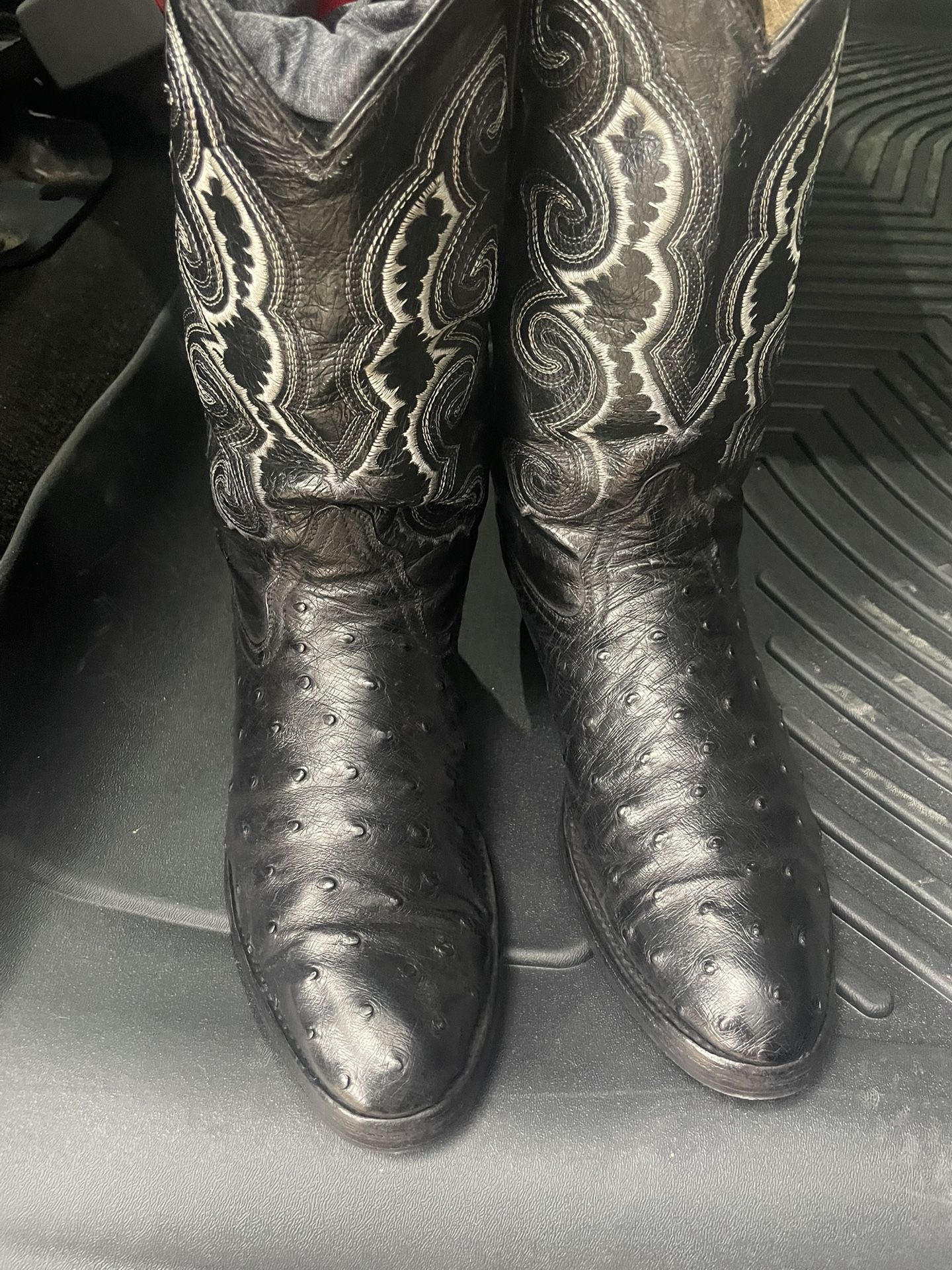 Men’s Black ostrich boots size 10 1/2 I accept cash, Cash App, PayPal, Zelle, and Venmo. I’m also open to any reasonable offers